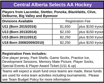 Lacombe Rockets U9-U18 participate in the Central Alberta Hockey League. U7 teams play teams within our area at home and away.