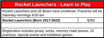 New this year we have merged Rocket Launchers and U5 bears together on Saturday Mornings!
